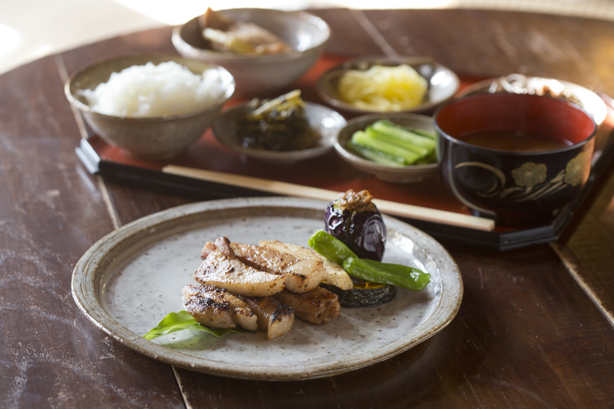 地域のお母さんが心を込めて作る、旬の食材を活かした手づくりのごちそう。夕食には、地元ブランド豚「妻有ポーク」を使用したお肉料理をご提供します。