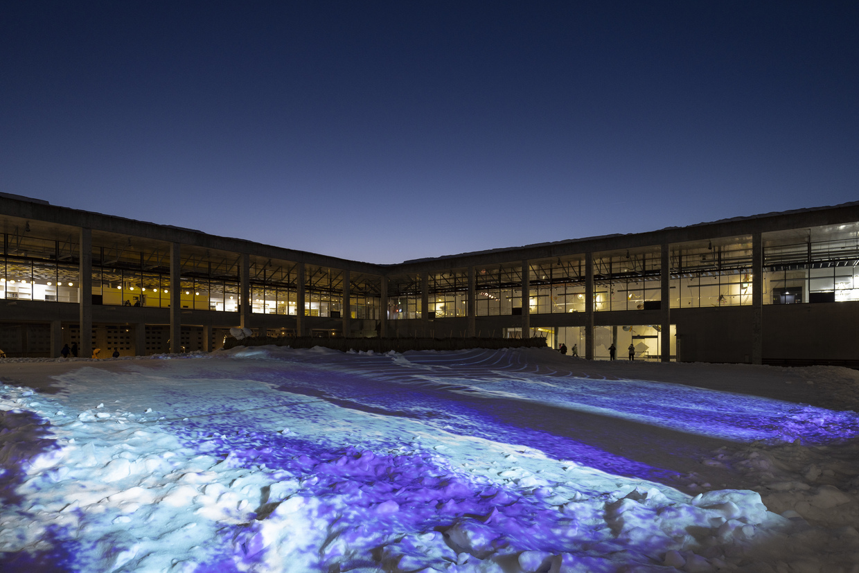 MonET屋外企画展「ホンヤラドウーSnow Meeting」関連イベントとして、建物中央の吹き抜け空間に広がる雪原に、期間限定で、映像作家・高橋啓祐による映像作品を投影します。公開期間のうち、2月21日(土)、22日(日)は20:00まで「越後妻有里山現代美術館 MoneET」にてナイトミュージアムをオープン。館内から池を見下ろしての鑑賞ができます。※最終入館19:30