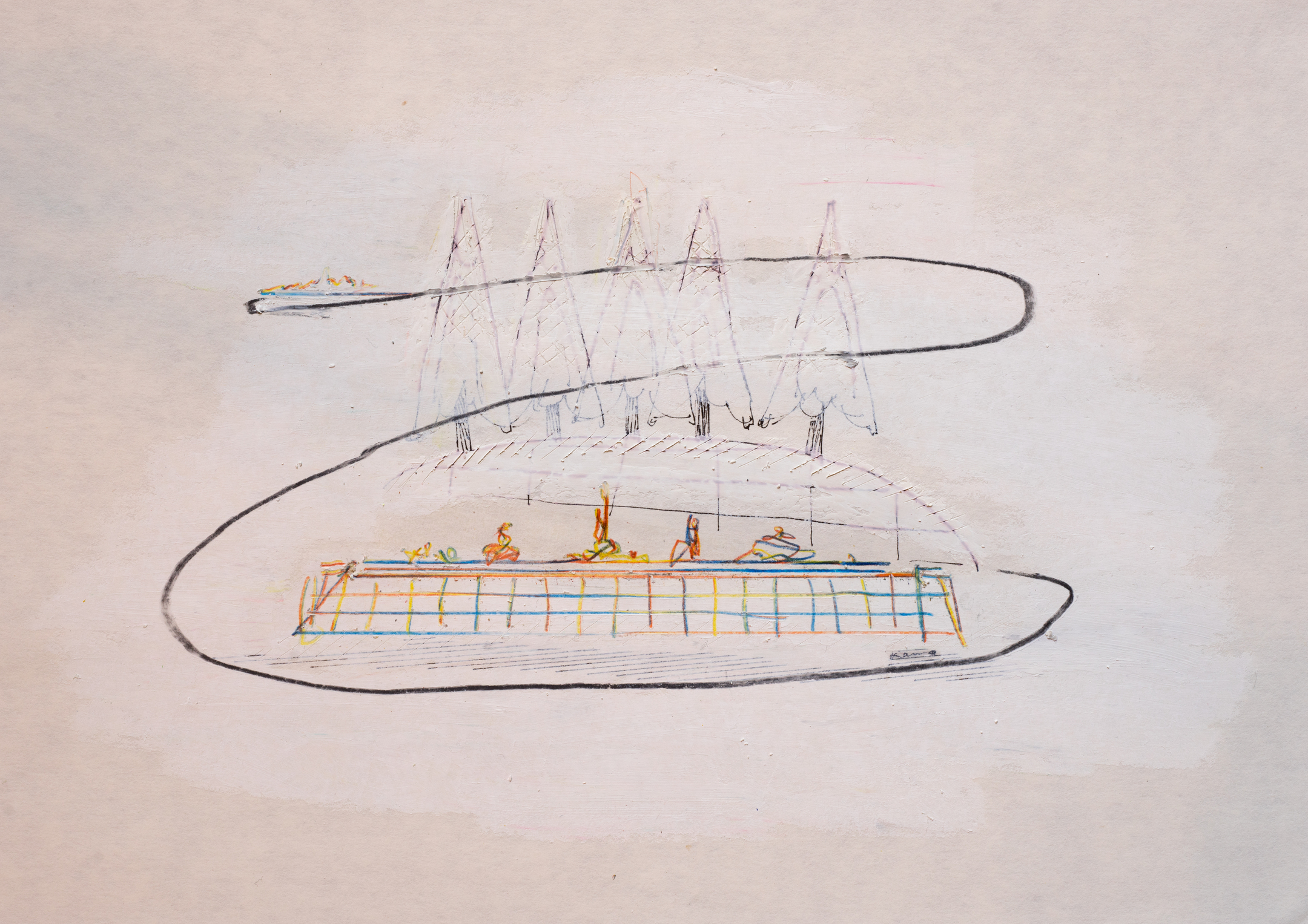 昨夏~秋にかけて公開していた「あいまいな地図/明確なテリトリー」を、さらに雪という自然のテリトリーが広がる冬に展開させる試み。ワークショップでは既存の作品を雪から保護する囲い(雪囲い)をつけ、降雪後にその「雪に埋もれる作品」の一部を掘り出し、新たに設置する「雪に浮かぶ作品」をともに鑑賞します。作家は、”日常的な視野ではともすれば見落としがちな何かに目を向け、考えるための「わな」のようなもの”として、本作を圧倒的な雪の中で展開します。植物、動物、人間それぞれの「縄張」が一時的に顕在化される様は、ここでしか見ることのできない体験となるでしょう。