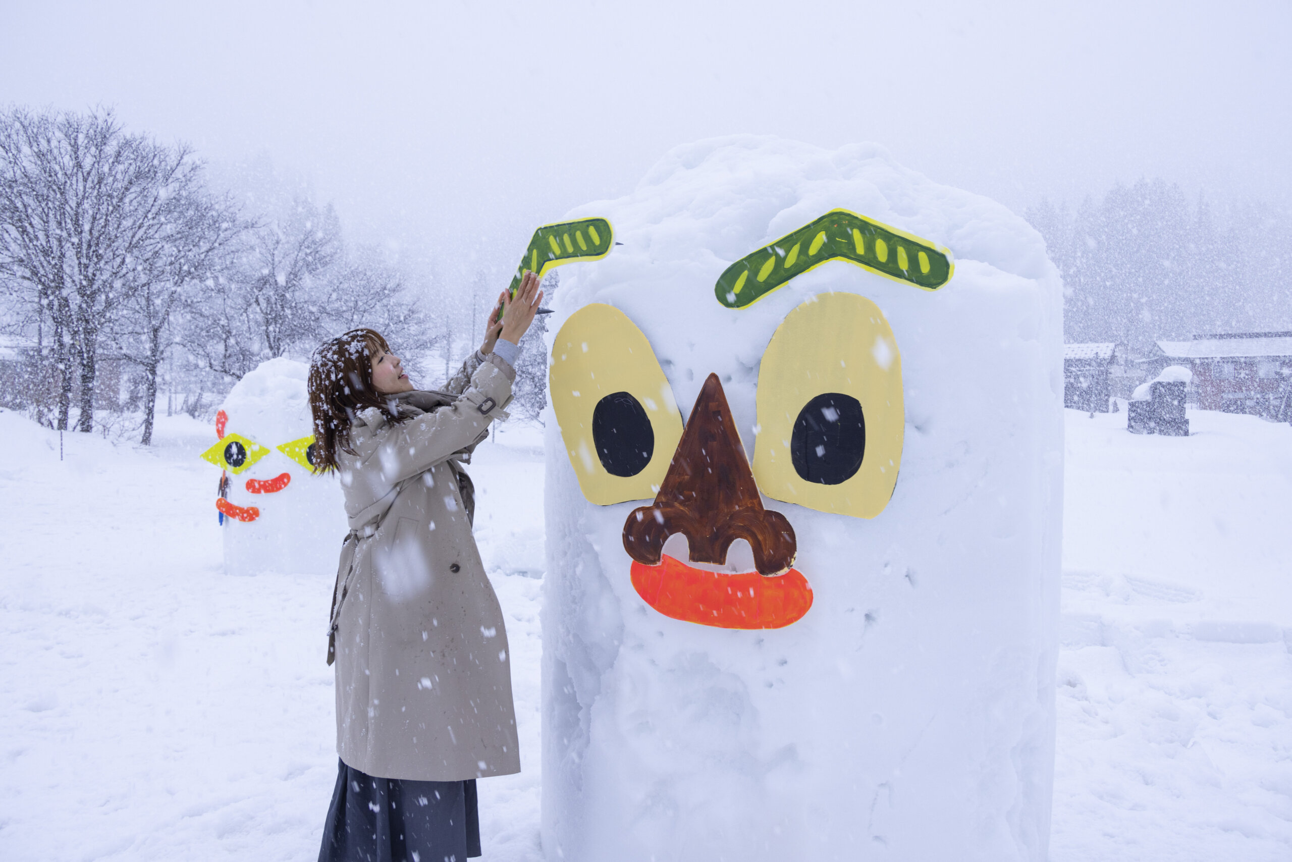 降雪期フィールドミュージアムは真っ白な雪に覆われます。 道さえなくなって、春~秋の姿からは想像もできないフィールドミュージアムで、季節限定のアート、地域体験、スノーアクティビティをお楽しみください。