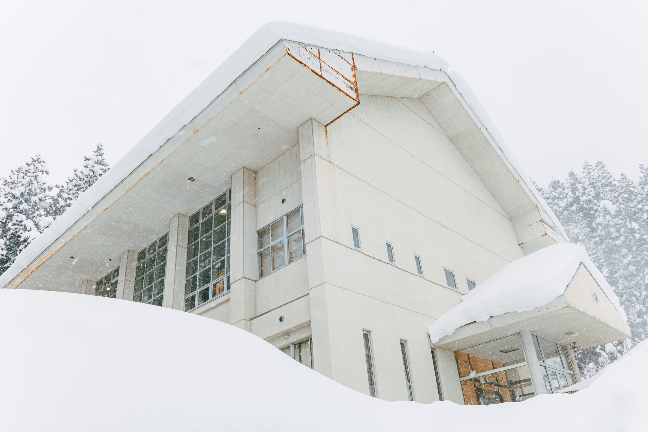 築70年の木造校舎をリノベーションしたドミトリータイプの宿泊施設。雪で校舎が包まれた冬も10名以上でご宿泊いただけます。
