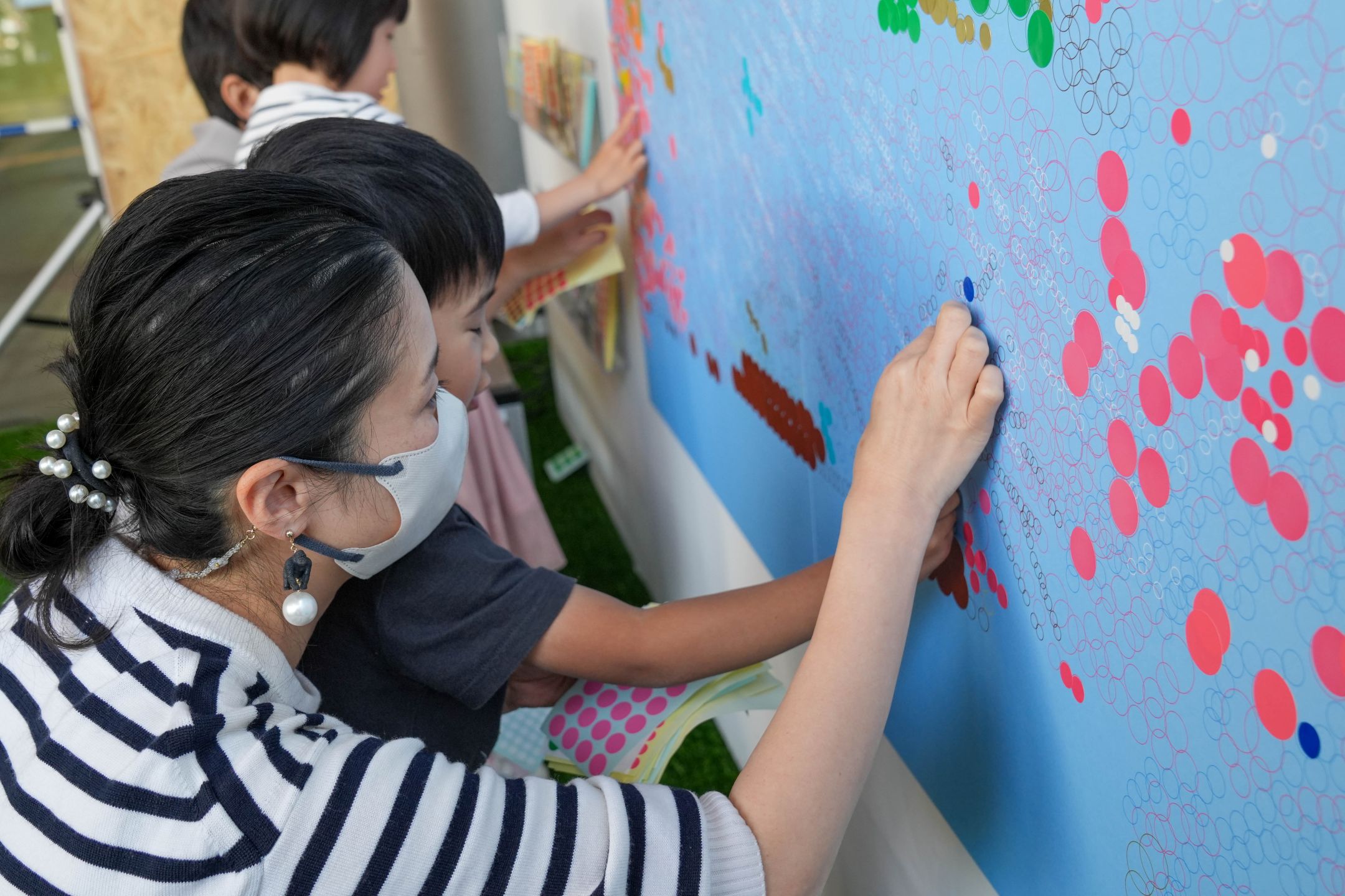 作品発表のみならず、シールを貼るだけで誰でも制作に参加できる観客参加型のワークショップ監修や、MBS制作『プレバト!!』の丸シールアート査定の先生として出演。