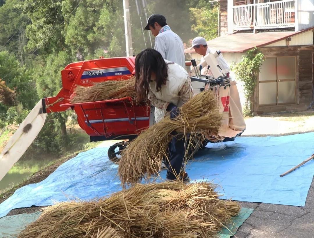 芸術祭作品で担当している集落での稲刈りと脱穀の手伝い