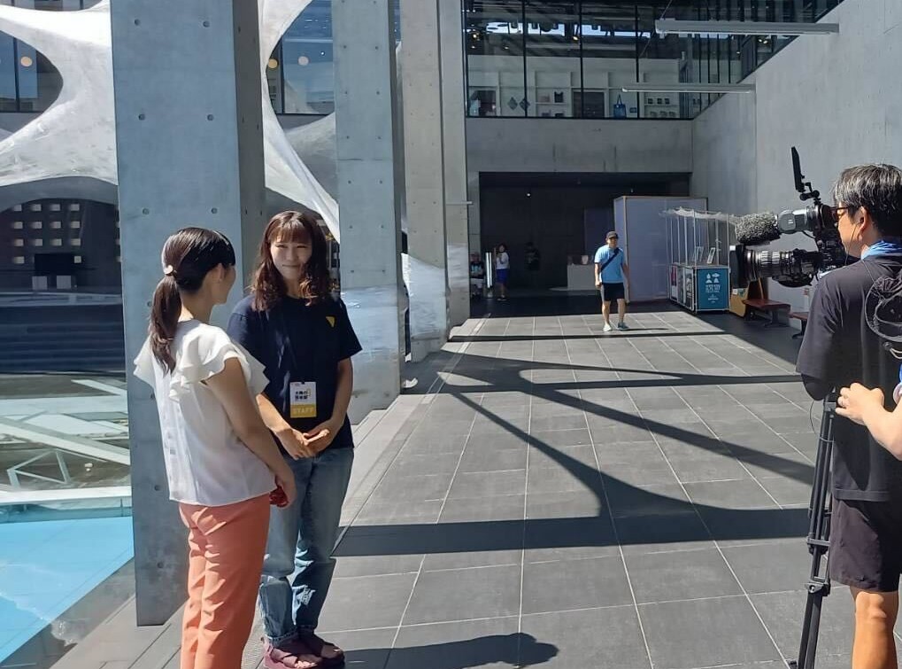 テレビ番組の撮影。トリエンナーレ会期中は特に、多くのメディアの方々に芸術祭の見どころをご紹介します。