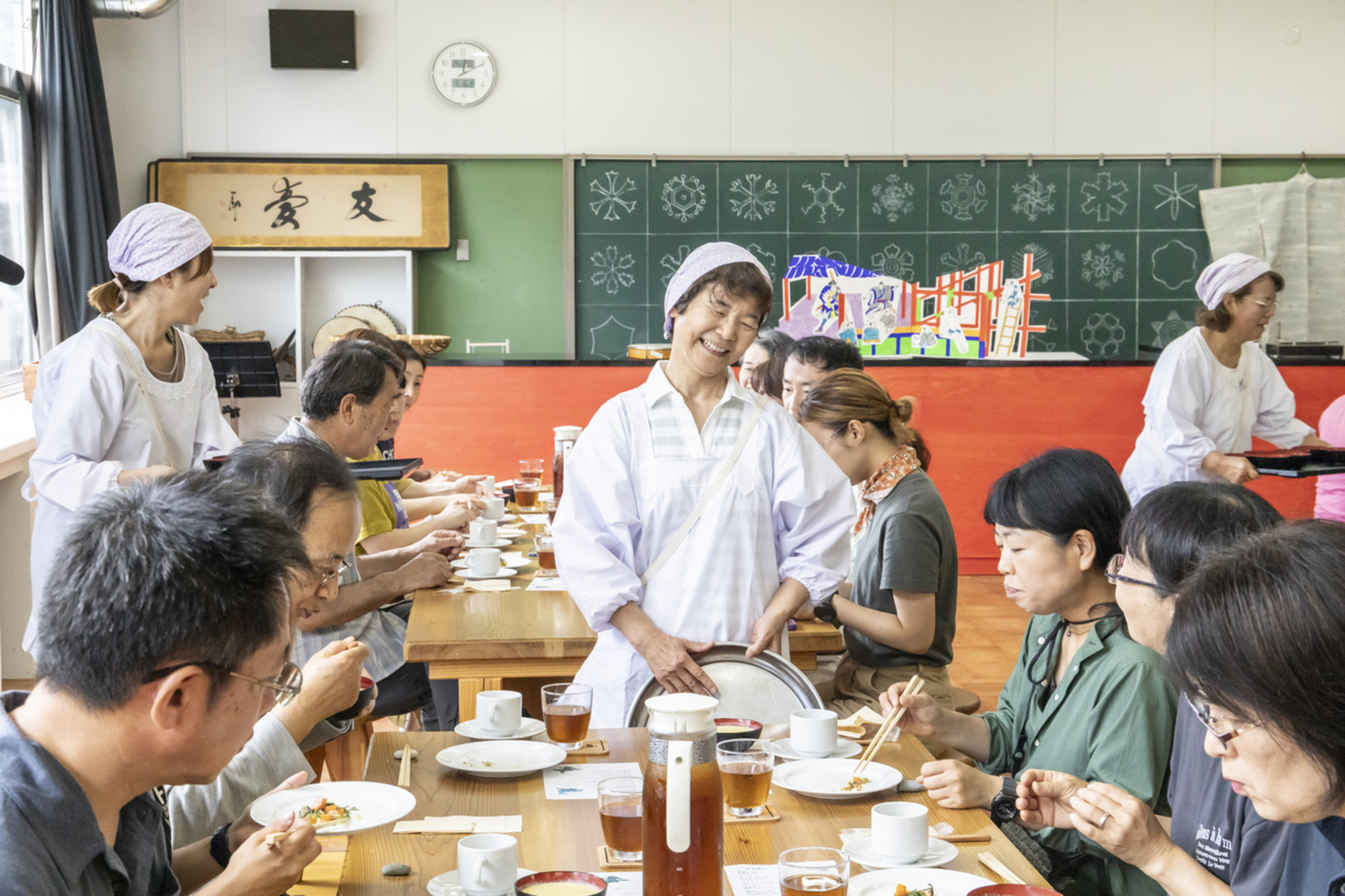 NPO法人越後妻有里山協働機構は、「大地の芸術祭」で生まれた作品や施設、プロジェクトを通年事業として運営し、越後妻有を魅力ある地域にしていくために2008年に設立されました。地元出身者や県内外からの移住スタッフで構成され、地元の方々や作家、こへび隊(「「大地の芸術祭」の里・越後妻有(十日町市・津南町)を舞台に、芸術祭を支えるために活動するボランティア)、地元サポーターの方々に支えてもらいながら3年に1度の「大地の芸術祭」、合間2年間の作品メンテナンス、企画展・イベント・ワークショップの開催、農業、ツアーの実施、グッズやお米の販売、食宿泊施設の運営、それら全ての広報や誘客促進に従事しています。 農業事業は、「大地の芸術祭」からの派生プロジェクトとして、2003年から「棚田バンク」サービスを導入・スタートしました。松代エリアは色濃い農耕文化をもつ一方、棚田の多い山間地域は大型機械を使えず、高齢化とともに耕作放棄地が増え続けています。それらをできる限り引き受け、耕作しながら棚田の保全活動に努めており、「まつだい棚田バンク」として会員から資金提供を受ける代わりに、NPO法人が農作業を担い、収穫した新米を分配する、それが「まつだい棚田バンク」の制度です。企業会員も増え、2025年現在約11.5haを耕作、会員参加型の田植えや稲刈りイベントには毎年200人以上が参加され、採れた新米はショップ販売や食施設でも提供しています。 さらに2015年には女子サッカー実業団「FC越後妻有」を発足。NPO法人職員としてサッカーをしながら「大地の芸術祭」運営のほか担い手不足の農業に従事する、「他に類をみないプロジェクト」の先駆け的なプロジェクトです。まだまだマイナーな女子サッカーは、環境整備や引退後の保証など様々な問題を抱えています。FC越後妻有の選手は、農業、作品メンテ、ツアー、食、美術館運営、広報など「大地の芸術祭」の各事業に携わっており、サッカーと合わせて選手が農業や芸術祭運営などの技術を身に着け、高齢化する地域を支えながら自身のキャリアを形成しています。現在地域リーグで活躍していますが、地域リーグの試合では珍しい300人以上が応援に駆け付けることもあり、選手たちの存在が地域を活気づかせる風景が広がっています。