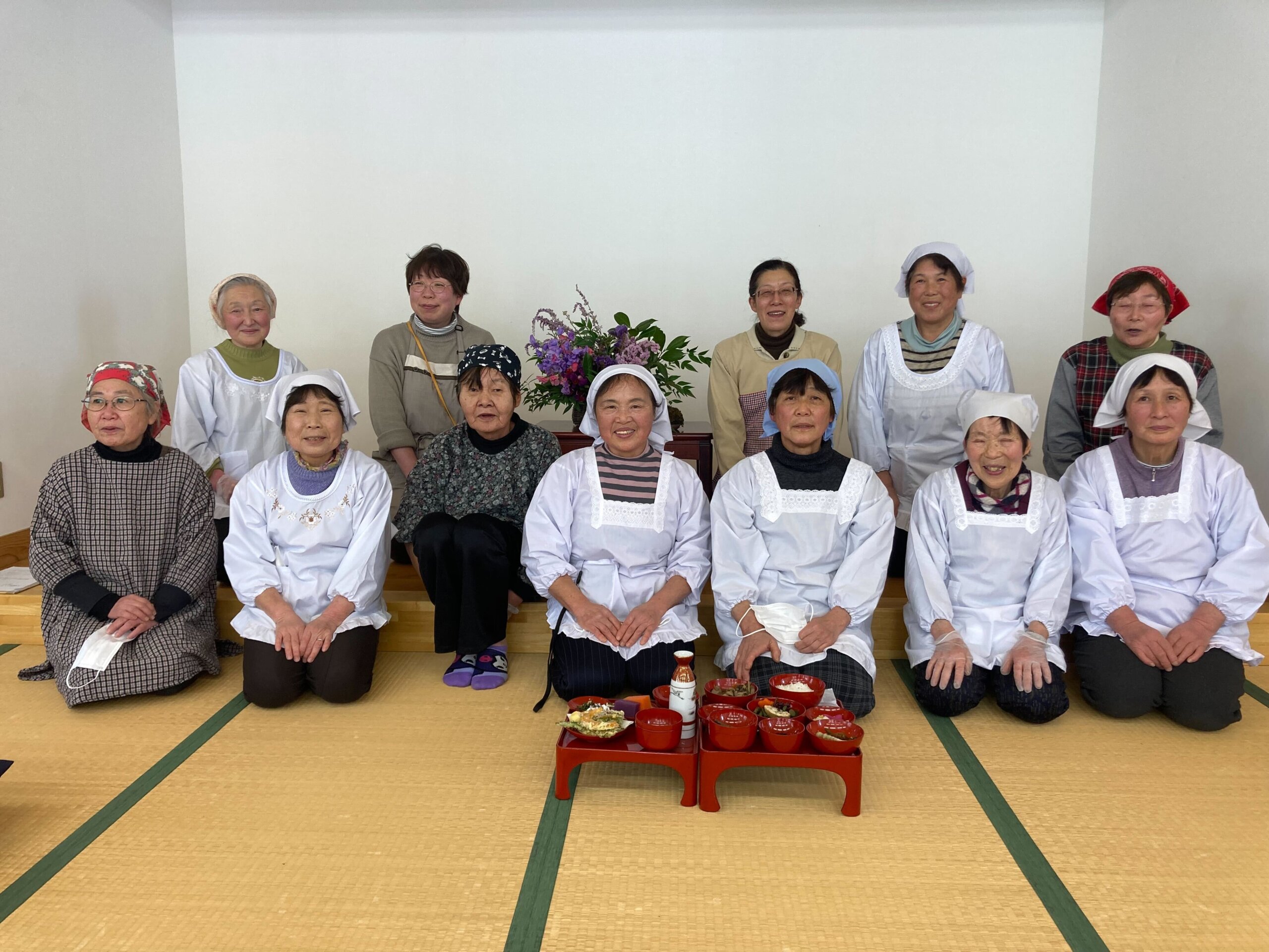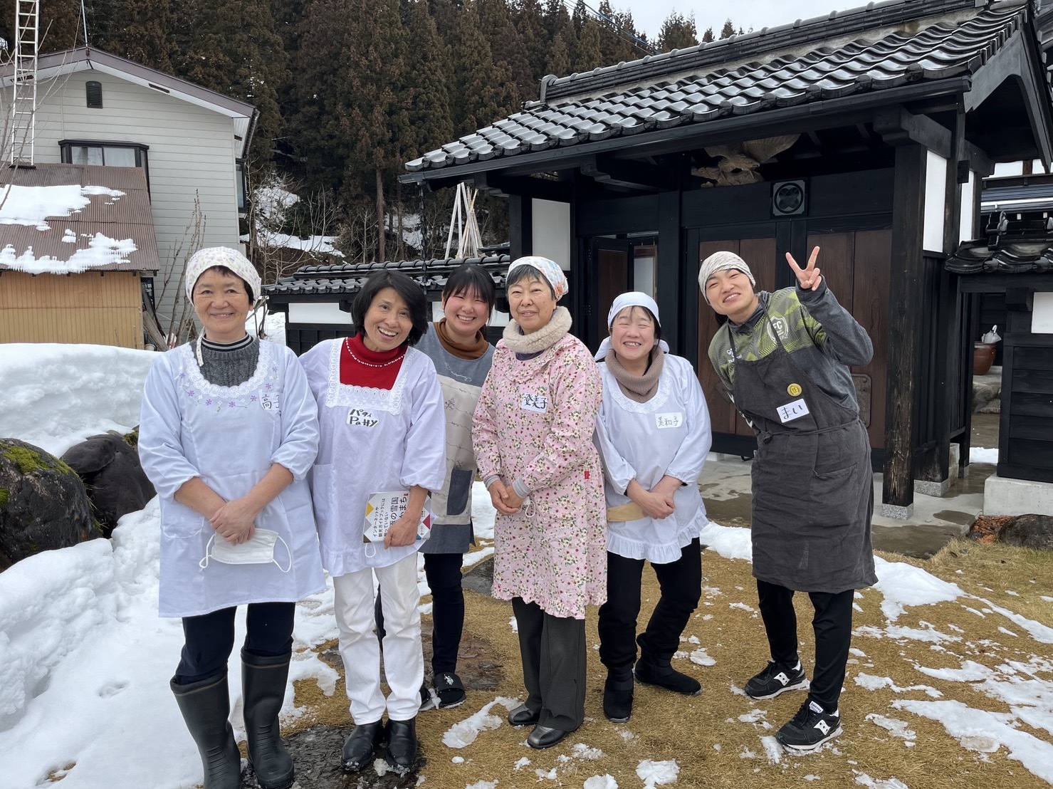 雪見御膳は、大地の芸術祭オフィシャルツアーに参加するほか、団体旅行などにあわせて貸切でお楽しみいただくこともできます。ご希望の方はお気軽にお問い合わせください。今年はこちらの集落の皆さんが担当してくださいます。