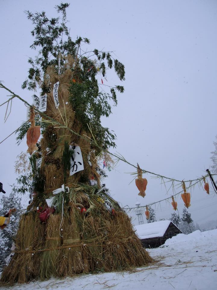 豊作や無病息災を願って火を焚く小正月行事。地域の皆さんが持ち寄った縁起物や書き初めを燃やす様子を見学します。